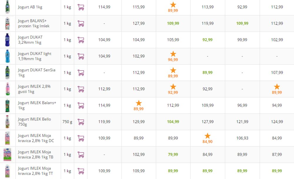 Tako danas, da bi kupili hleb "Savu" treba da izdvojite oko 46 dinara, za litar jogurta treba da izdvojite od 90 dinara pa nadalje u zavisnosti od proizvođača.