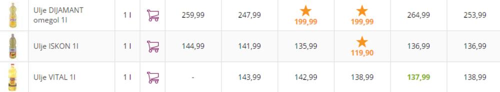Litar ulja je 2007. godine koštao 115 dinara, a danas je prosečna cena oko 140 dinara.