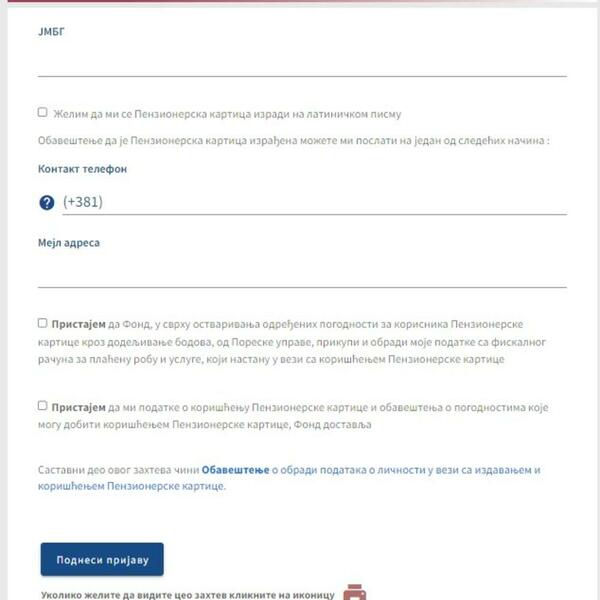 DETALJI PRIJAVE ZA PENZIONERSKE KARTICE
