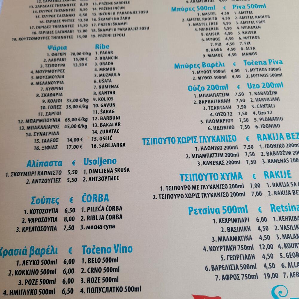 Ovde se riblji specijaliteti kreću u proseku od 8 do čak 70 evra, piva oko 4 ipo evra, a sokovi 4 evra.