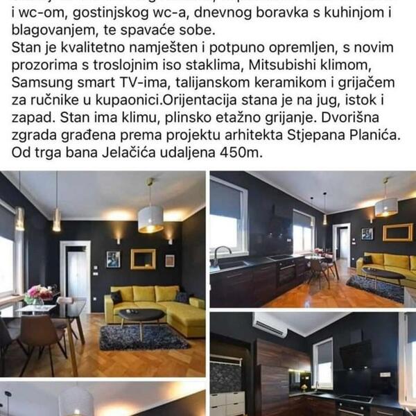 Za isti taj stan postoji oglas i u grupi "Stanovi Zagreb - NAJAM".