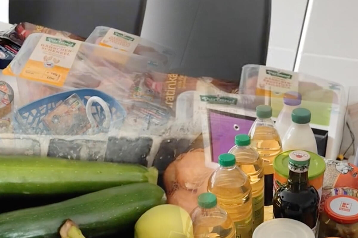 "Evo, dragi ljudi, danas smo otišli da kupimo naše nedeljne namirnice u Nemačkoj. To je ovo što vidite, neko ulje, kafa, ajvar, tu su masline, koziji i kravlji sir, jogurt, jaja, nešto slatko, pileće meso, namazi, škampi, argentinski odrezak, malo voća i povrća - i to sve, što je nekad koštalo 60-70 evra, sada kad saberem sve račune, izađe oko 200 evra", kaže Aleksandar.