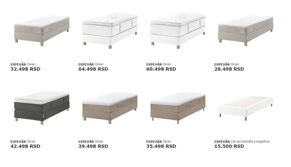 Kreveti su takođe raznoliki kada je cena u pitanju. Jedan od skupljih koje smo našli košta 42.498 dinara.