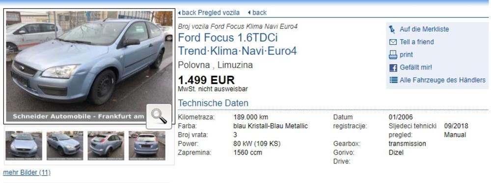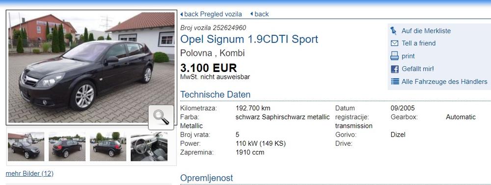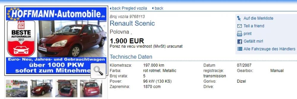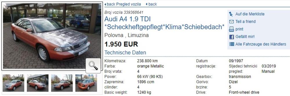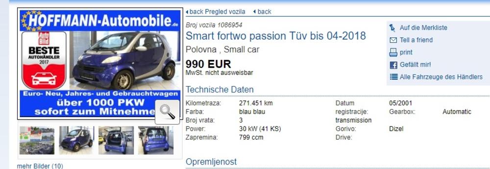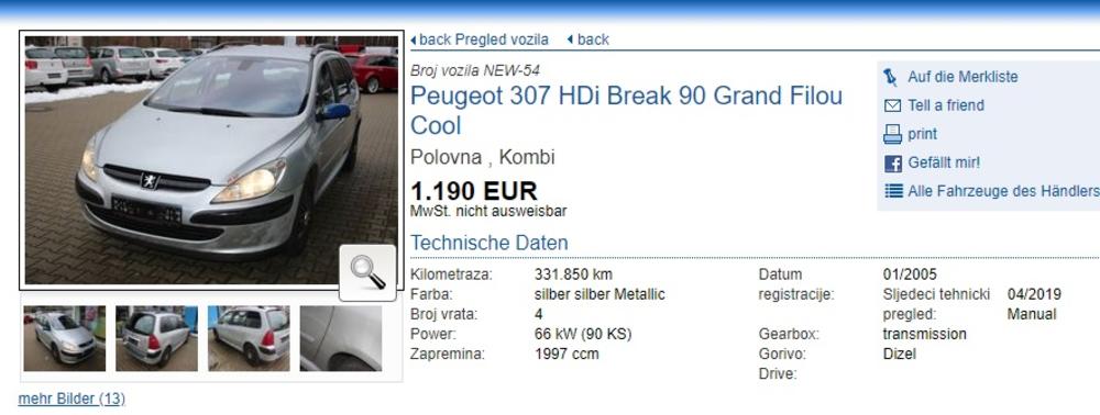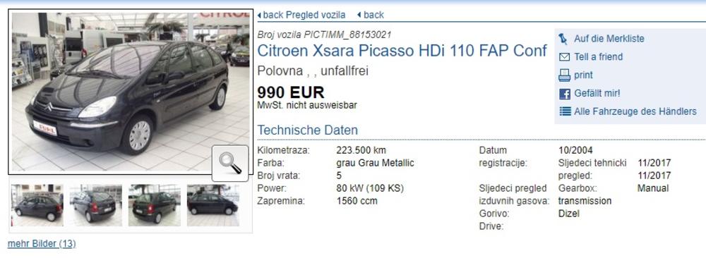 Poređenja radi, ovaj automobil, polovni, se u Srbiji na sličnim sajtovima nudi za preko 2.000 evra (doduše tri godine mlađi automobil).