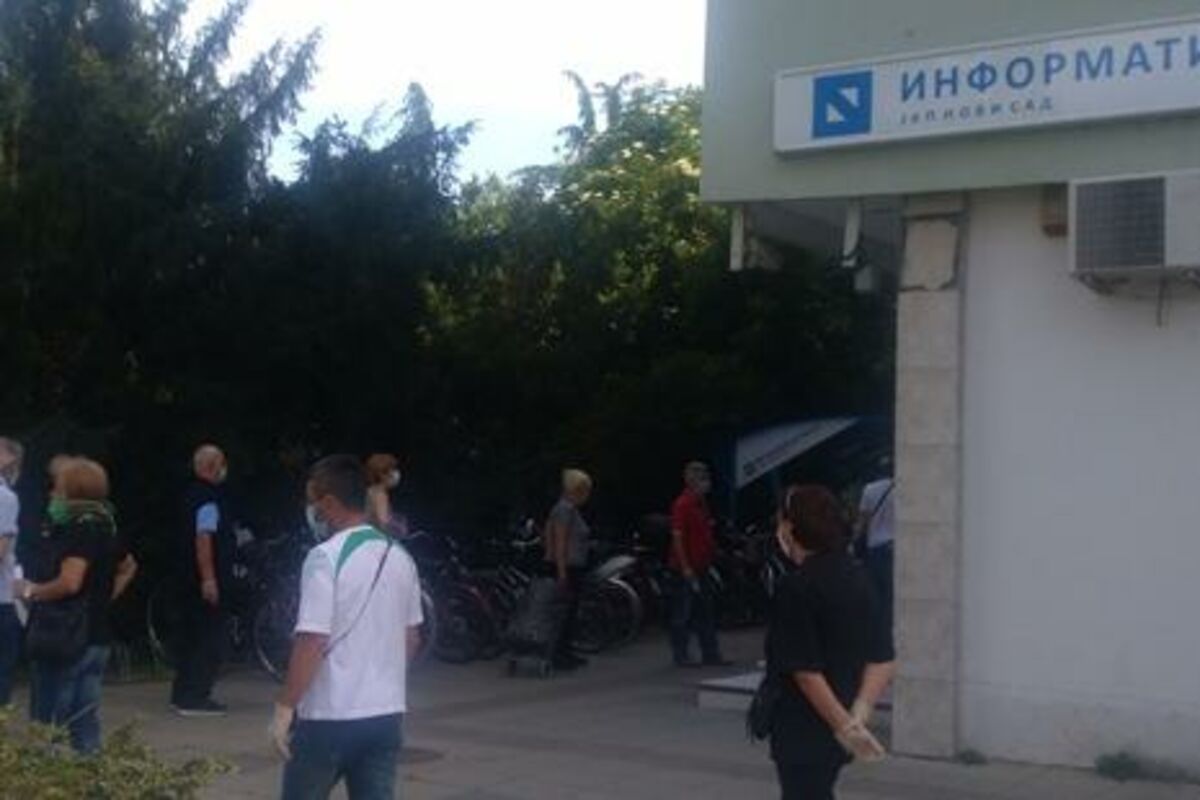 A ispred šalter-sale u zgradi "Informatike" tokom prepodneva u ponedeljak se samo nadopunjavala duga kolona građana sa maskama i rukavicama, koji su na propisanom međusobnom odstojanju strpljivo čekali da dođu na red.
