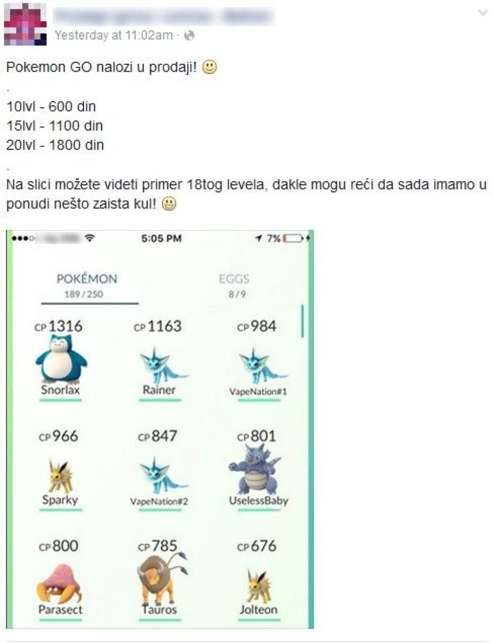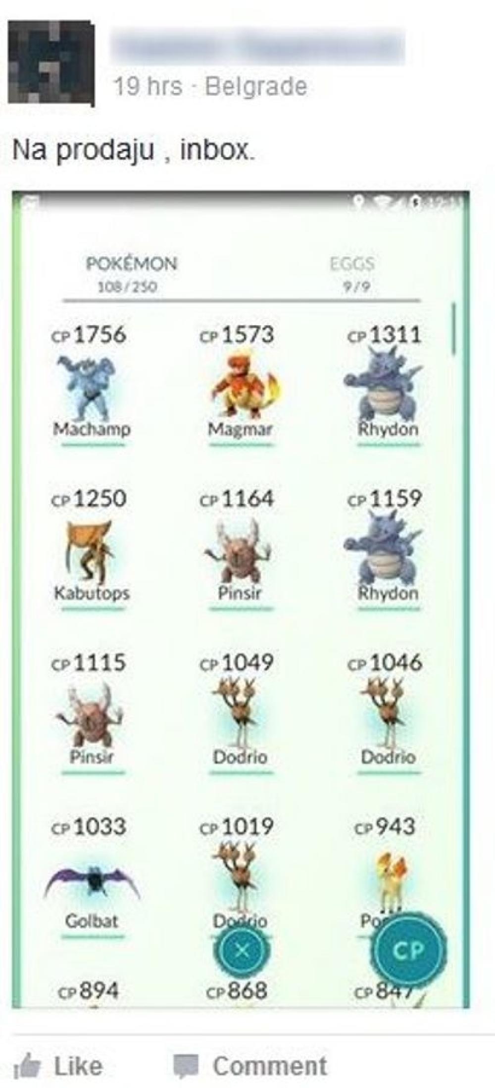 Posle vesti da Srbi zarađuju ulažući na berzi u firmu koja je pokrenula igricu Pokemon Go, naš narod je našao i druge načine da zarade na ovoj igrici - prodajom akaunta na Fejsu.