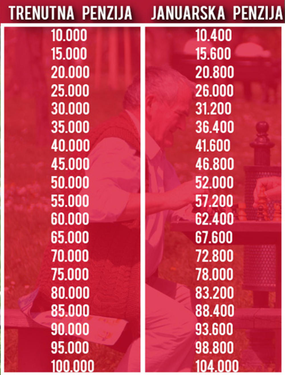 EVO KOLIKE ĆE PENZIJE BITI OD JANUARA! Povećanja od 400 do 4.000 dinara! Tu vam je DETALJAN SPISAK (TABELA)