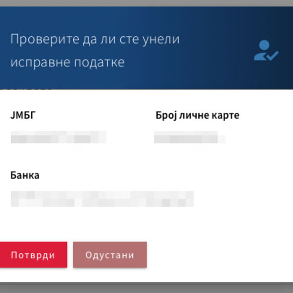 Nakon unošenja osnovnih ličnih podataka (JMBG, broj lične karte i ime banke), biće zavedena prijava čiji će status moći da se proveri na navedenom portalu. Ukoliko državljanin nema račun u banci, potrebno je samo da izabere banku u kojoj će mu automatski biti otvoren namenski račun. Nakon obrade prijave, prijavljeni državljanin će iznos novčane pomoći moći da podigne sa svog ili namenskog računa.