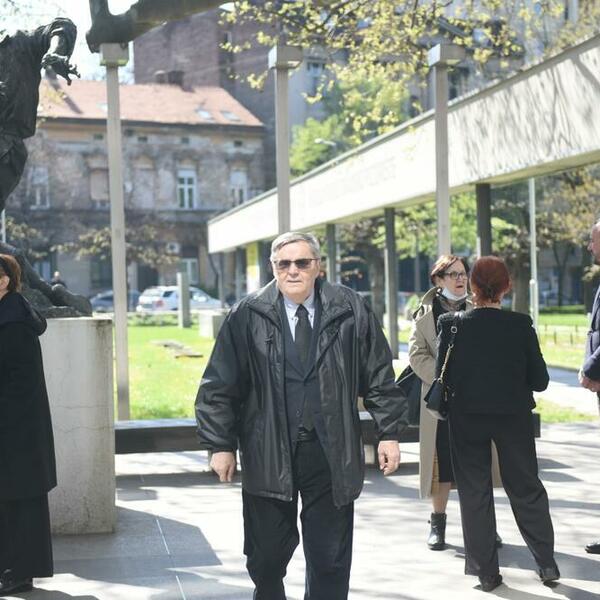Pokušavam da dočaram sliku pogrbljdnog čovrka, sa poluosmehom i loše prikrivenom svešću. O njegovoj mudrosti, znanju i umeću znate svi, dozvolite mi da dodam i otmenost", rekao je Vladimir Kostić, predsednik Sanu.