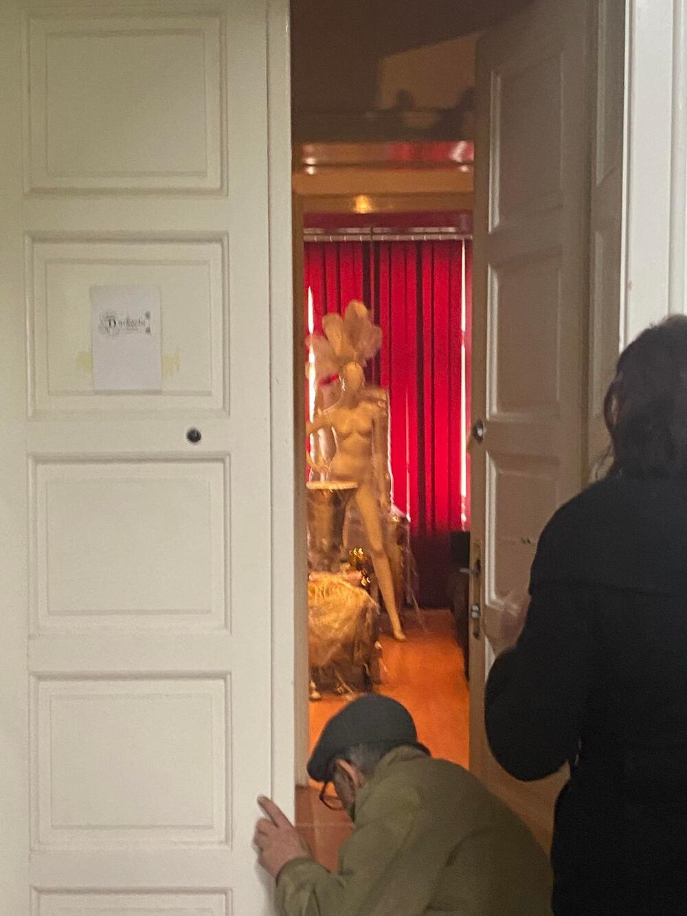 Kako smo mogli da vidimo u objektu gde je navodno Kostić pravio neprijatne scene, nalazi se lutka za kreacije, vaze upakovane u foliju, crvene zavese, kao i go parket.