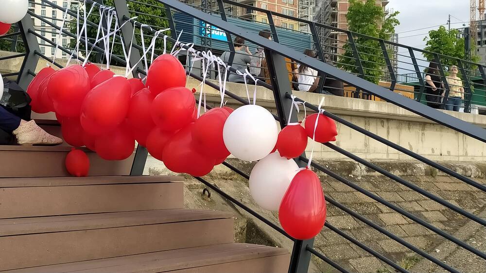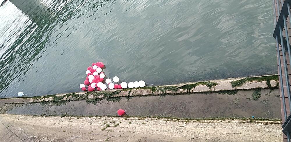 Cveće pluta Savom, napravljeni su i baloni u obliku srca koji su krenuli ka mostu i formiraju slovo "P". Svi se čude kako baloni idu jedan za drugim, ne razdvajaju se.