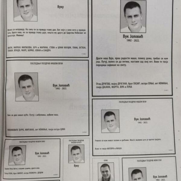 Želeo bih da do svega ovoga nije ni došlo. Žao mi je izgubljenog mladog života i razumem kroz kakvu bol i tugu prolaze Vukovi roditelji. Dao bih sve na svetu da mogu da promenim to što se dogodilo, ali i ovo što se posle tragedije u kojoj su dve porodice zavijene u crno trenutno dešava, kaže u ispovesti Milan N., otac Đure (23), osumnjičenog za ubistvo Vuka Jolovića (30) u Jakovu.