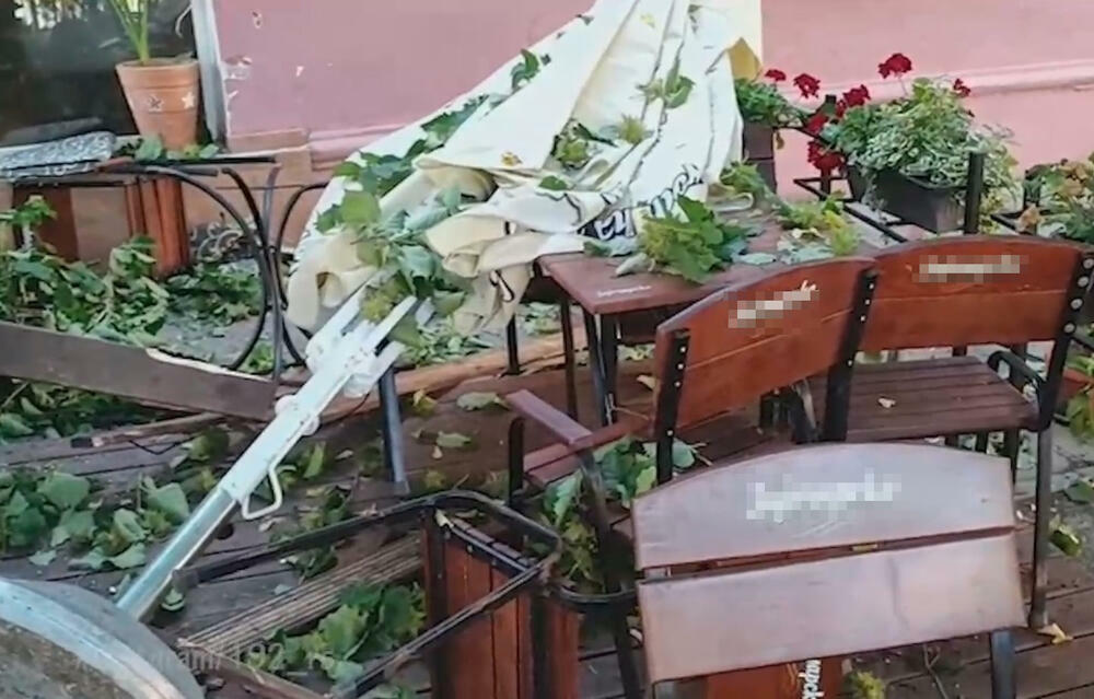 Od siline udara pokrivljena je čitava čelična konstrukcija bašte i bašta je isčupana iz zemlje iako je bila ankerisana i zavarena, a teške metalne stolice su spljoštene, neke su završile i delovima. Delovi inventara kao i suncobran ostalo su na sred ulice.