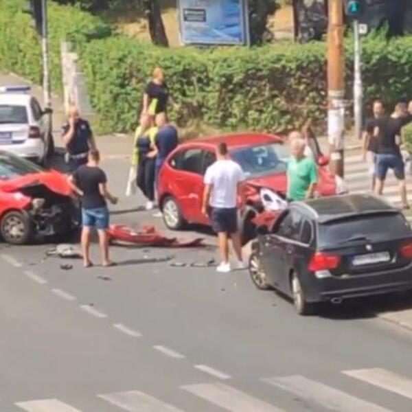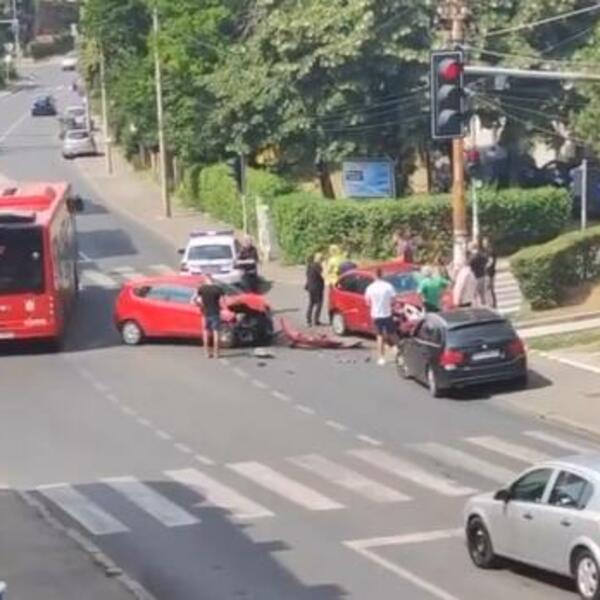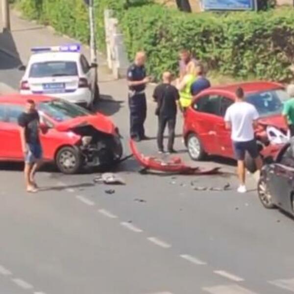 Do sudara je došlo na uglu Jablaničke i Ratka Mitrovića, a kako se vidi na snimku sa lica mesta, u nezgodi su učestvovala dva automobila.