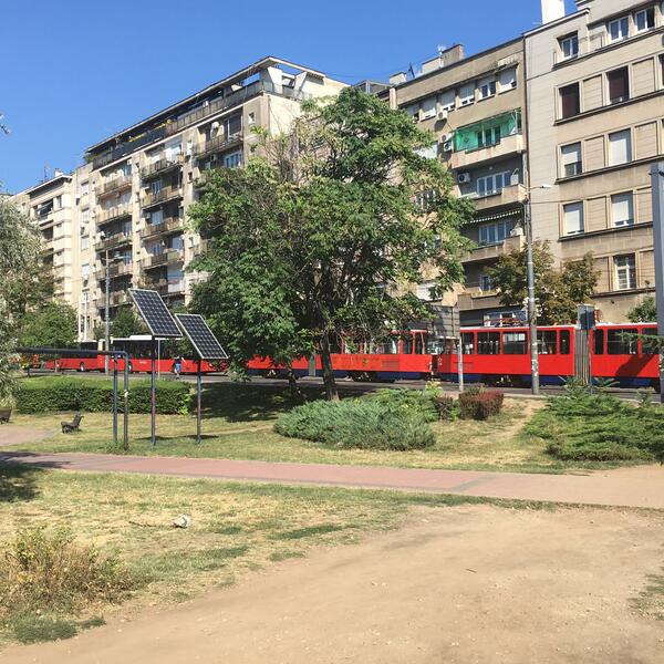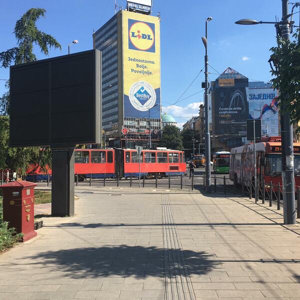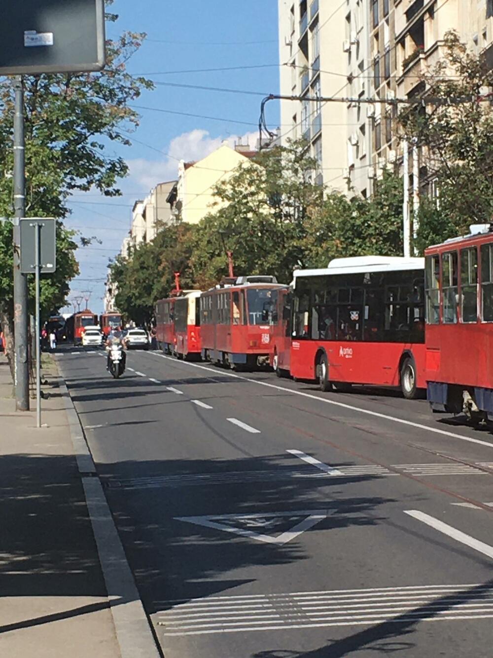 Tramvaji i autobusi zaustavljeni su u koloni.