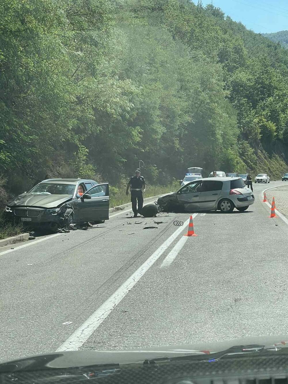 "Od siline udara na vozilu "reno" je otpao točak i razbijen je skoro čitav prednji kraj, dok je drugo vozilo "bmv" sletelo sa magistrale i takođe mu je prednji deo poprilično oštećen. Prava je sreća da niko nije završio u reci Lim koja protiče pored same saobraćjnice", kaže za RINU jedan od očevidaca.