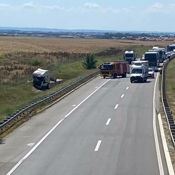 Saobraćajna nesreća u kojoj su učestvovala teretna vozila, dogodila se danas posle 11 sati na auto-putu ka Novom Sadu, kod Batajnice.
