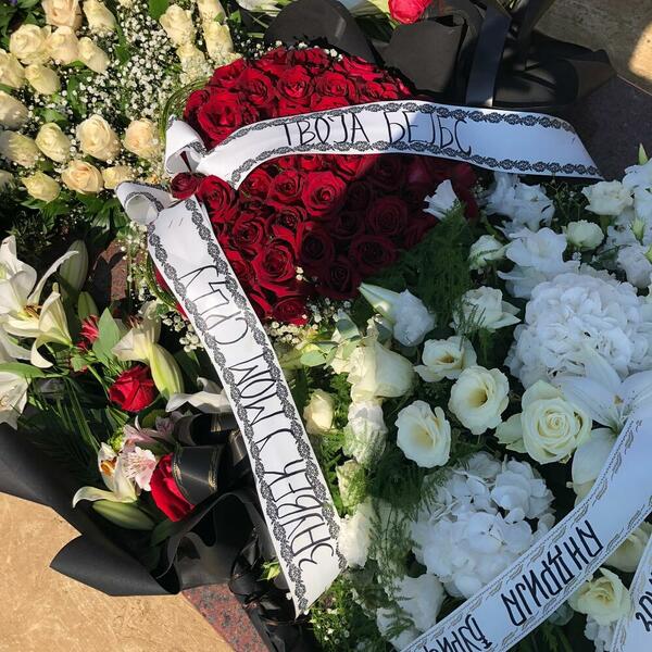 Danas je na sahrani suze krila iza tamnih naočala, a na Vlaovićev grob ostavila je veliki buket crvenih ruža sa porukom”Zauvek u mom srcu, tvoja Bejbs”.