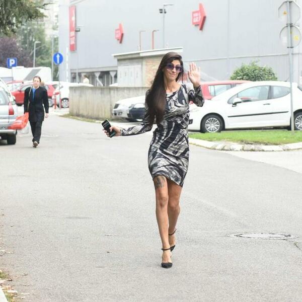 ČEDINA JECA STIGLA U POLICIJU! Skockala se u kratku crno-belu haljinicu i štikle, a imala je i poruku za NOVINARE