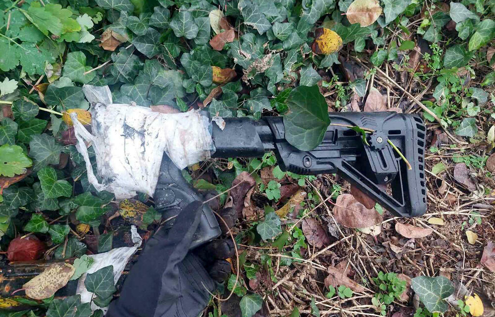 Pregledom prostora oko objekta, u žbunju, policija je pronašla automatsku pušku, a u blizini i okvir sa municijom.