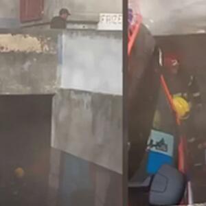 Na snimcima se vidi kako građani posmatraju vatru koja je, prema nezvaničnim informacijama, zahvatila magacinske prostore sa lako zapaljivim eksplozivnim materijalima, a onda beže kako se požar razbuktava.