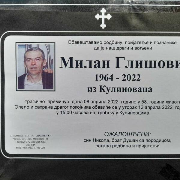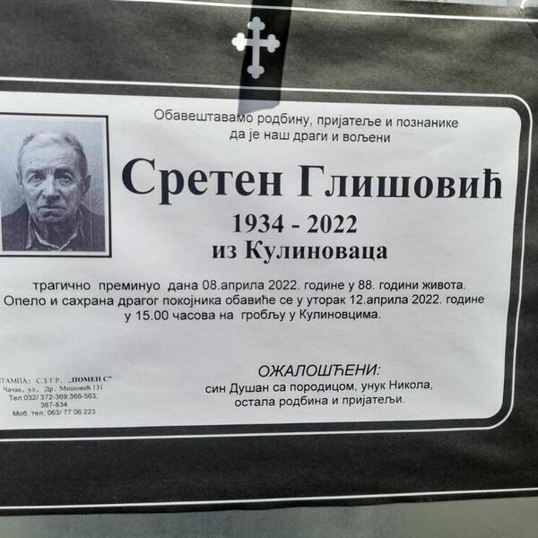 Telo Svetlane (49) nađeno je u hodniku kuće, a nedaleko od nje bio je Milan (57). U sobi je policija zatekla telo Sretena (87). Obdukcija je pokazala da je troje Glišovića ubijeno nožem.