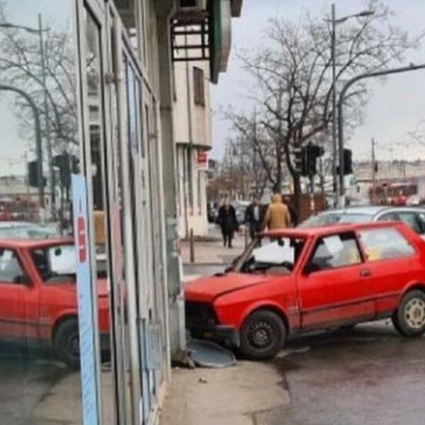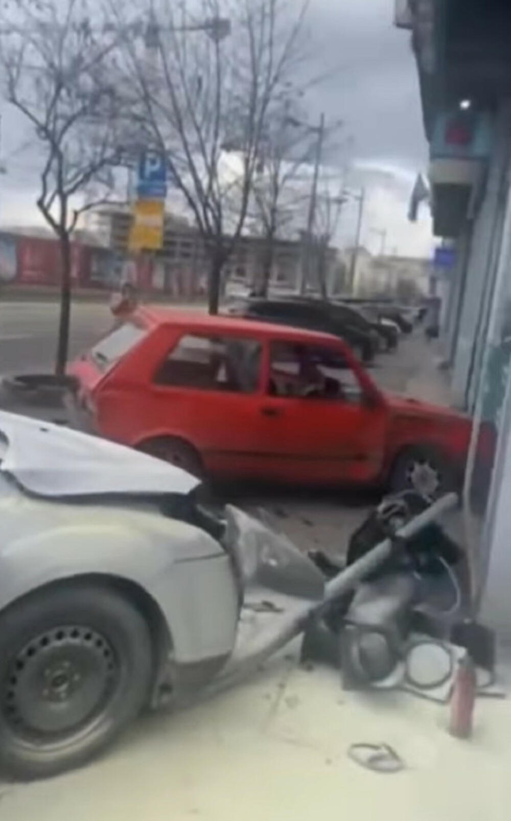 Nakon sudara jedno vozilo je uletelo u izlog. Takođe, oštećen je i stub semafora.