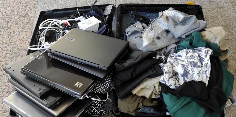 Tom prilikom su među prtljagom pronađena tri kofera u koje je bilo spakovano ukupno 45 različitih laptop i tablet-računara sa punjačima, 43 mobilna telefona, kao i pet muških ručnih časovnika u originalnom pakovanju.