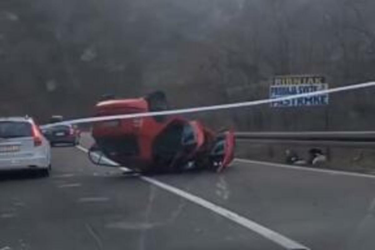 Na slici objavljenoj na instagram stranici 192, vidi se automobil koji se prevrnuo na krov.