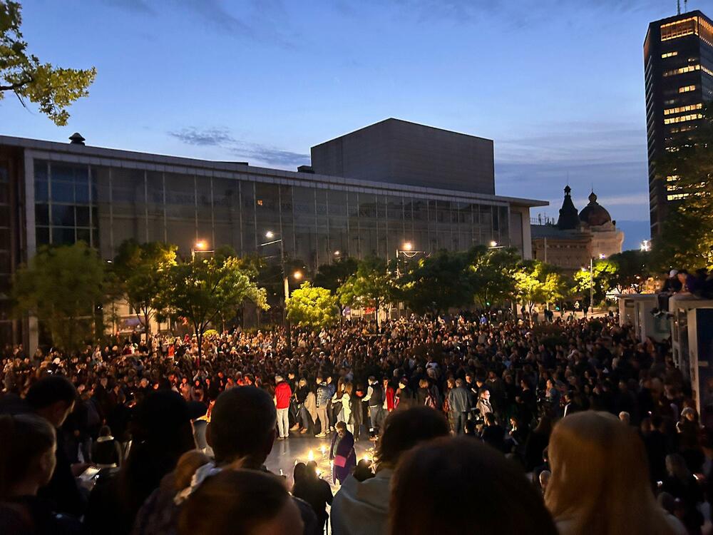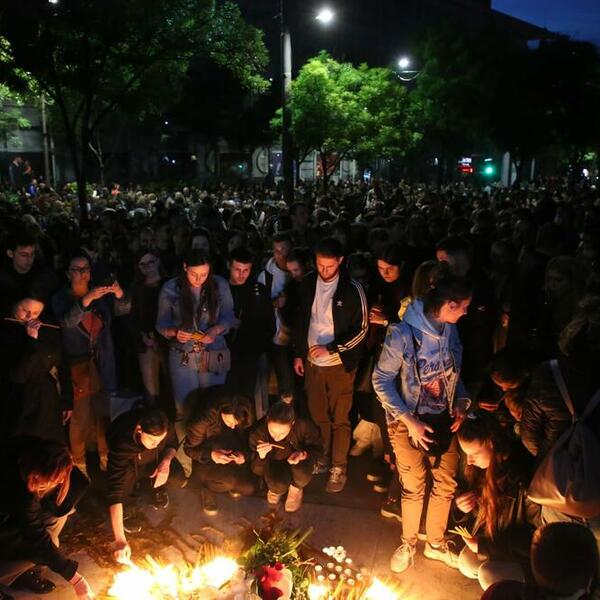 Veliki broj građana okupio se na više mesta u centru Beograda kako bi odao poštu stradalima u današnjem masakru u OŠ "Vladislav Ribnikar" i pružio podršku njihovim porodicama.