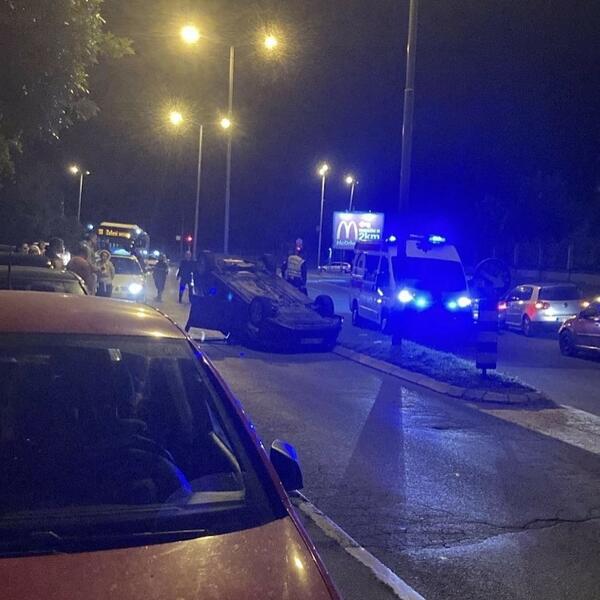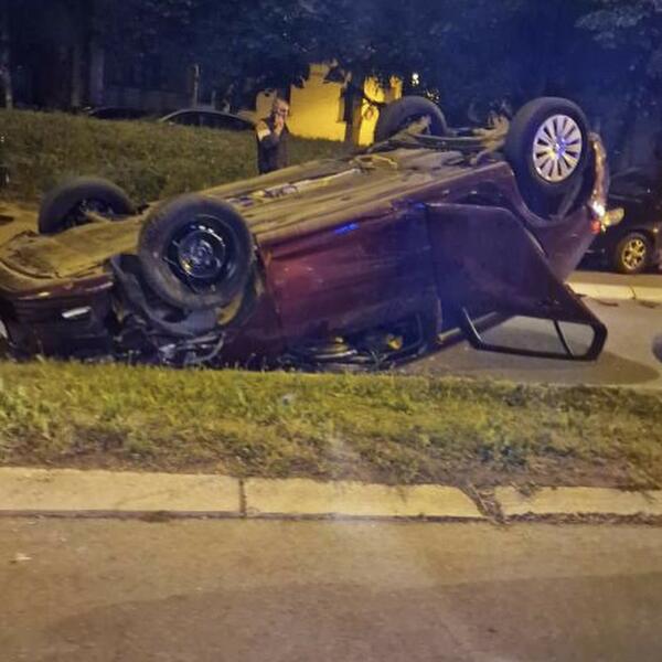 U večernjim satima došlo je do nezgode na Čukaričkoj padini, a automobil se od siline udara prevrnuo na krov.