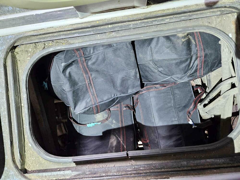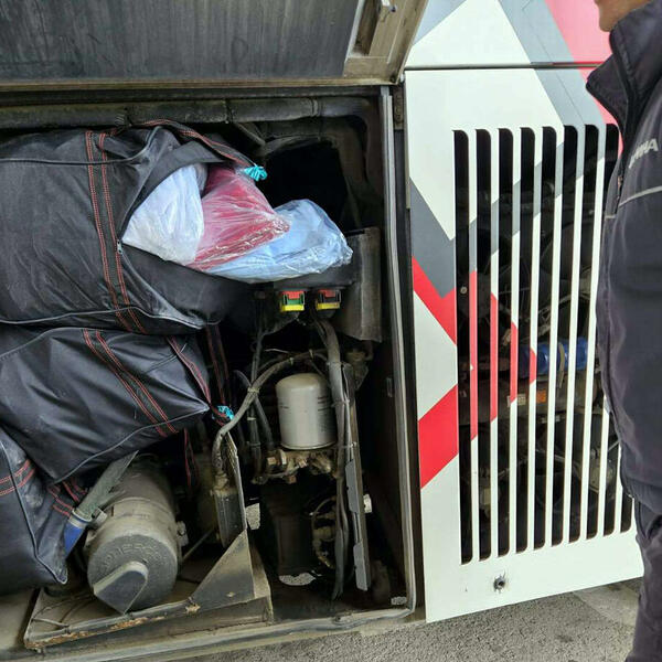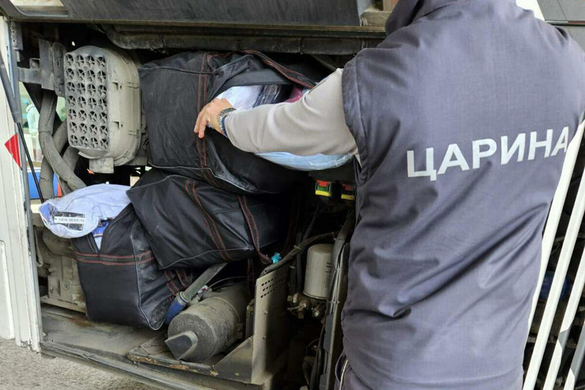 Nakon što su putnici izneli svoje kofere i torbe, usledio je detaljan pregled autobusa i tada je najpre u prostoru oko motora pronađeno nekoliko sakrivenih torbi punih nove, neprijavljene garderobe.