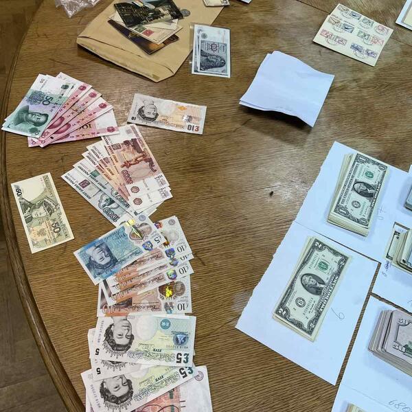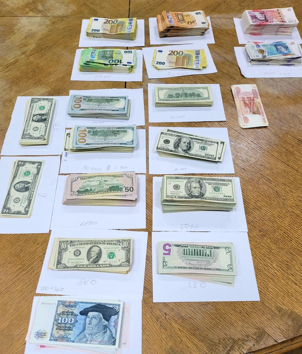 Usledio je detaljan pregled i tom prilikom je na više mesta u automobilu najpre pronađeno oko 117.000 evra u različitim valutama: 49.700 evra, 53.993 američkih dolara, 14.370 britanskih funti, 5.030 nemačkih maraka, 23.950 ruskih rubalja.