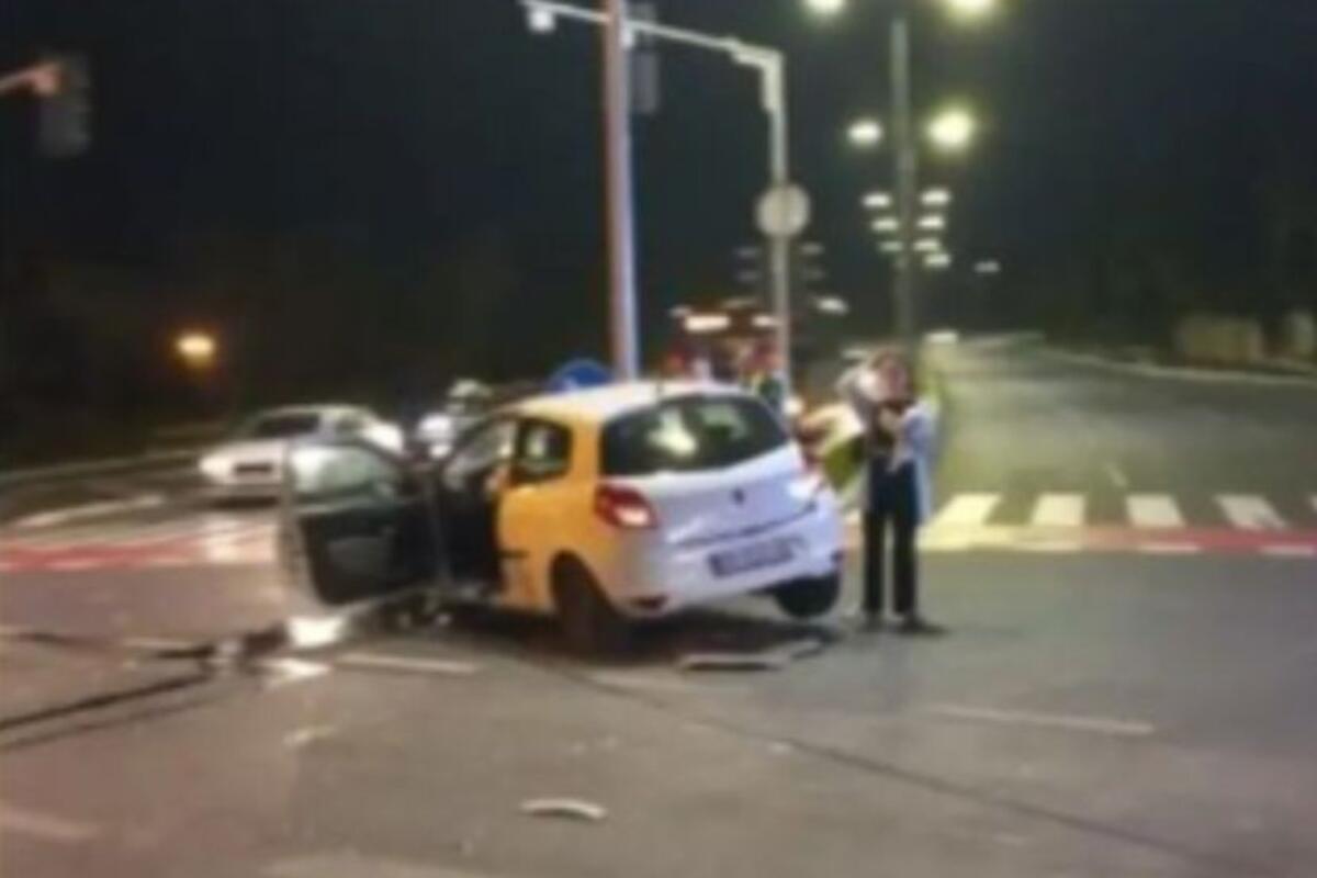 Kako se na slici sa lica mesta može videti, jedan od automobila je od siline udarca udario u banderu i potpuno je "zgužvan".