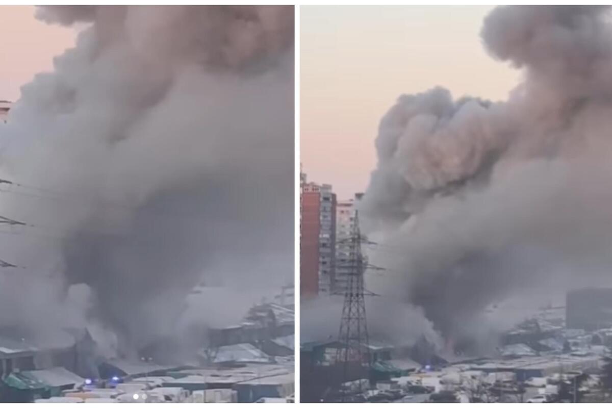 Od požara u Bloku 70, u Kineskom tržnom centru iznad bloka 70 i Novog Beograda digo se ogroman oblak dima.