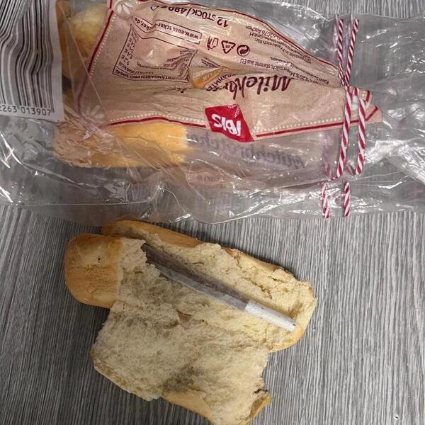 Uz objavu je priloženo i nekoliko fotografija na osnovu kojih se vidi da je spomenuti džoint mladić pokušao da sakrije u kifli.