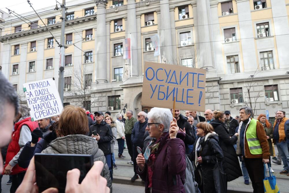 Na transparentima je pisalo: "Pravda za Dadu, Ćuruviju, narod i za Srbiju", "Kaznite ubice".