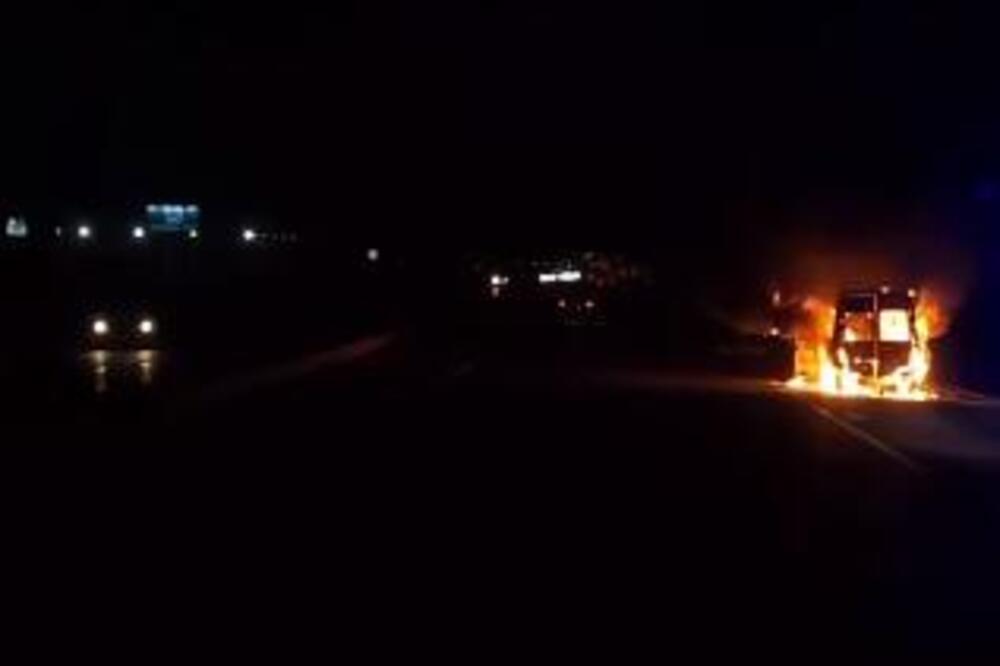 Vatra je progutala celo vozilo, plamen bukti na sve strane.