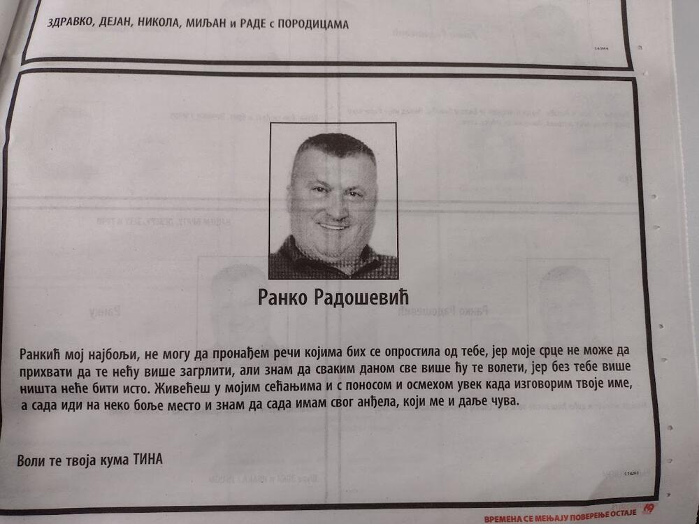 Podsetimo, kako je Kurir pisao, Radoševićev BMW, kao i saobraćajna dozvola i polisa osiguranja na njegovo ime, pronađeni su prilikom pretresa kuće Marka Miljkovića. Radošević, pre nego što je ubijen, svedočio je u istrazi za pranje para protiv Belivuka, Miljkovića, njihovih žena, kao i Filipa Ivanovskog, njegove supruge i Belivukove tašte.