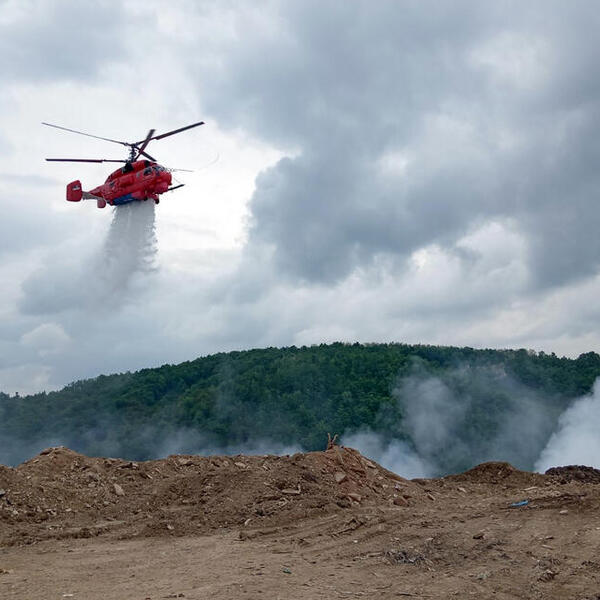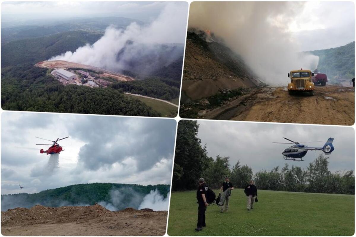 Helikopteri Kamov Ka-32 i Super Puma H215 velike nosivosti vode, zbog razbuktavanja požara usled obrušavanja desne strane deponije, pružiće podršku gradskim i komunalnim službama koje su angažovane na zatrpavanju požara peskom.