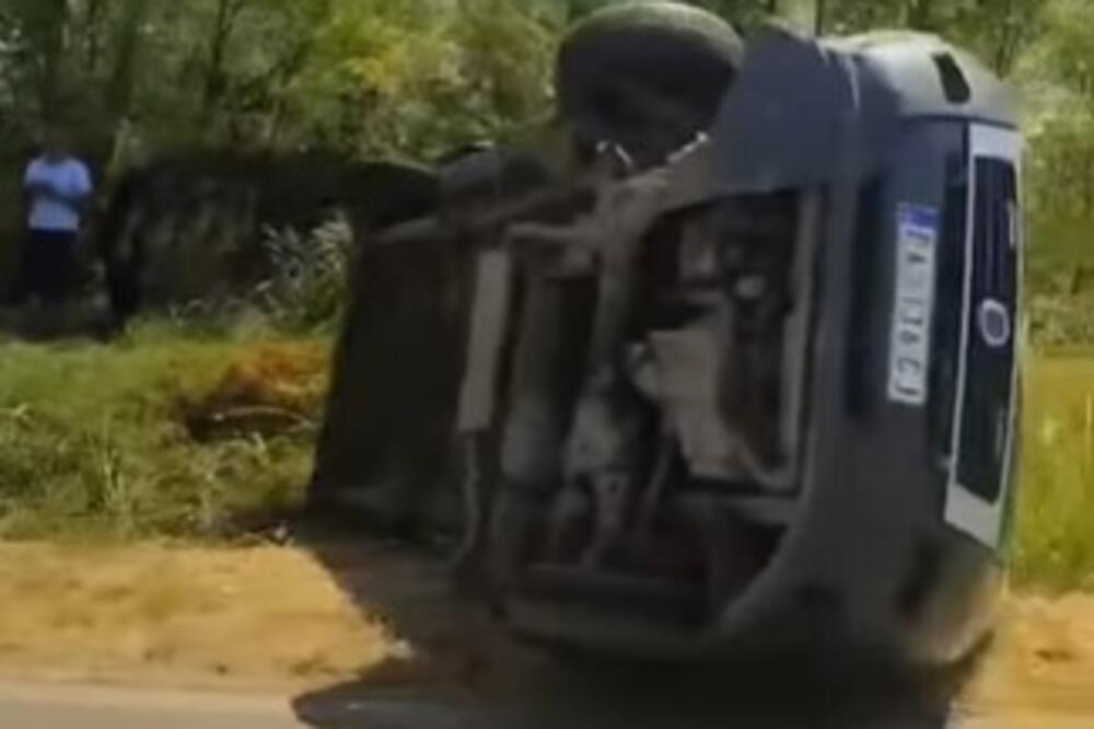 SNIMAK TEŠKE NESREĆE KOD ALIBUNARA: Prevrnuo se kombi u kome su bili pritvorenici! (VIDEO)