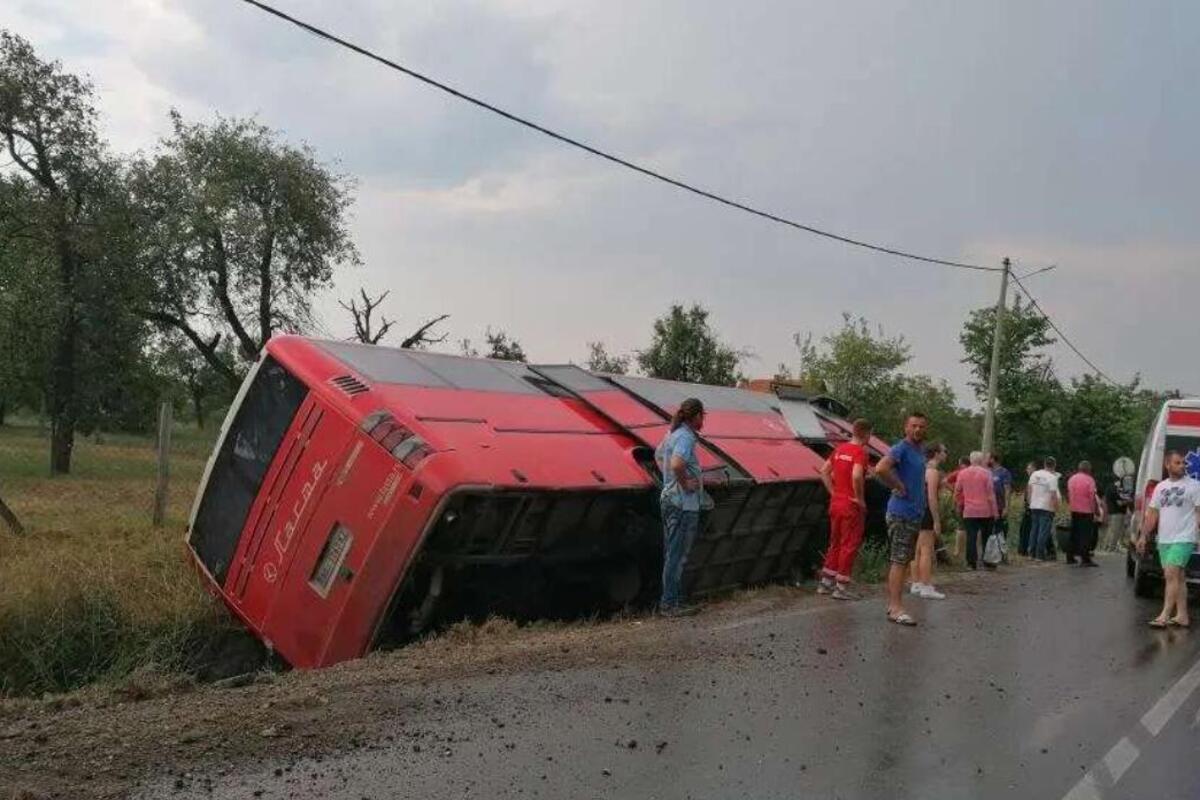 Hitna pomoć se nalazi na licu mesta. Kako možemo videti na slikama, autobus je sleteo sa puta i prevrnuo se.