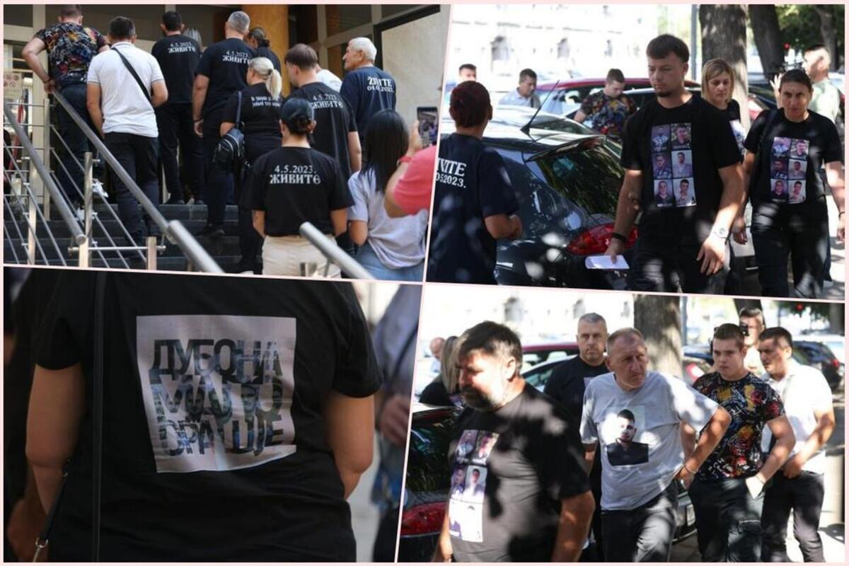 Na ročište su došli i roditelji i brat Petra Mitrovića koji je teško povređen u masakru, ali je nažalost nakon 50 dana lavovske borbe preminuo. Ožalošćeni članovi porodica i na današnje ročište došli su sa majicama na kojima su fotografije ubijenih mladića i devojke.
