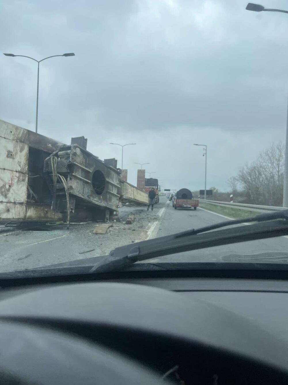 Kako javlja naš reporter sa lica mesta, prevrnula se šleperska prikolica u smeru ka Beogradu.