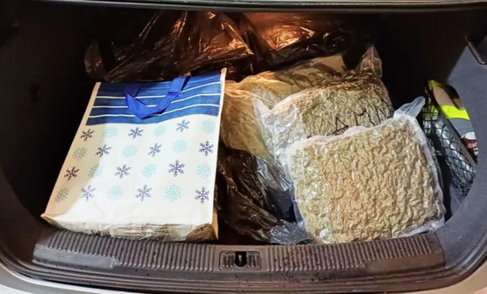 "Policija je u automobilu marke "audi" kojim je upravljao osumnjičeni, pronašla oko 18,4 kilograma materije nalik na marihuanu, spakovane u 15 kesa i jednu limenu kutiju.