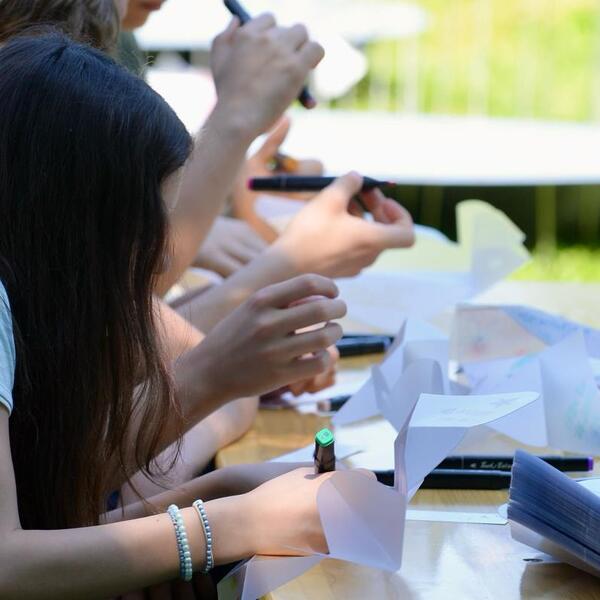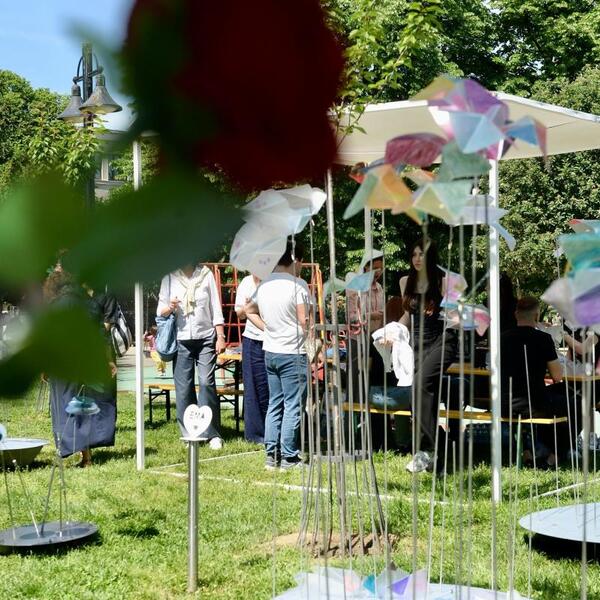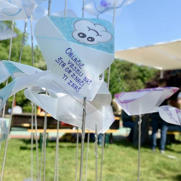 Bolne trenutke sa okupljenima podelili su i osnovci koji su zajedno došli danas ovde gde za radioničarskim stolom oslikavaju ptice koje će kasnije simbolično biti postavljene u ovom delu parka.