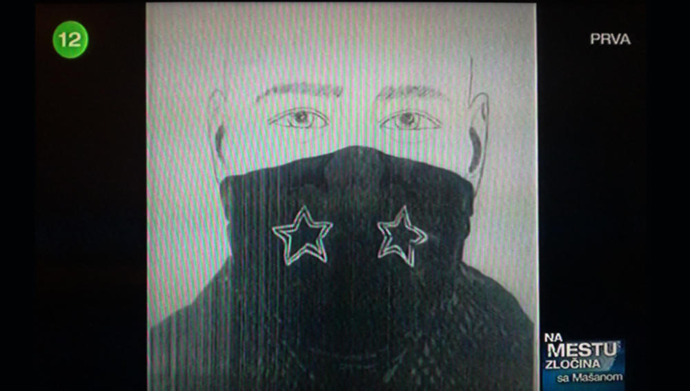 Radi se o muškarcu koji ima vrlo malo kose, svetlijeg je tena i bio je maskiran maramom.