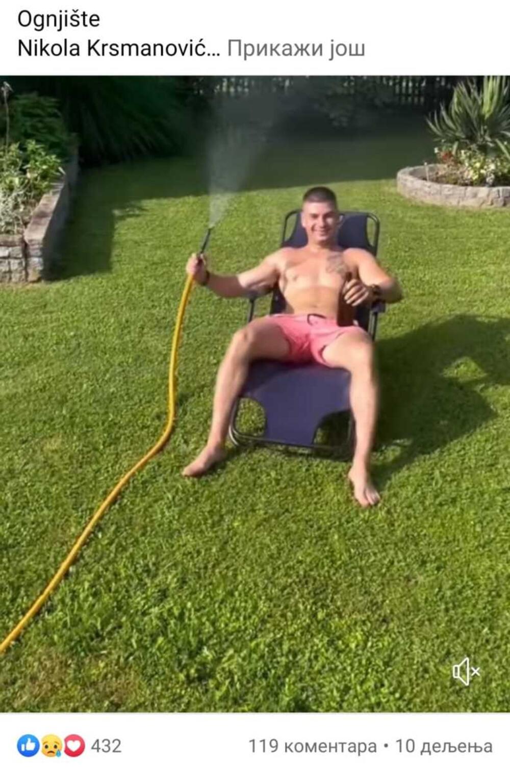 Kako smo već naveli, društvene mreže su preplavljene objavama o brutalno ubijenom srpskom policajcu. Prvo je rođak, osnosno stric Nikole Krsmanović objavio niz fotografija i kratak video snimak na kojima on pozira go do pojasa u dvorištu dok roštiljaju. Na svakoj slici može se videti osmeh policajca dok sede nasred dvorišta i poliva se vodom iz creva. Takođe, simbolično ovu objavu prati pesma "Ognjište" od Peđe Medenice u kojoj se navodi: "Tu gde sam se davno ja rodio, gde se otac Bogu molio u kući toj gde su me uneli davno božuri su uveli. Kog greje sad moje ognjište, koga deli moje dvorište, ko bere to moju jabuku, ko to spava na mom jastuku" - tužne su reči pesme.