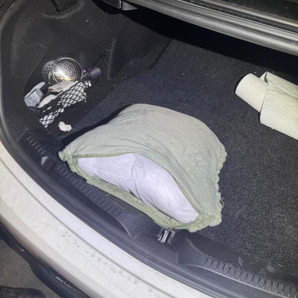 Detaljnom kontrolom uz pomoć službenog psa, najpre je kod vozača pronađena manja količina kokaina, da bi potom u jastuku, koji se nalazio na zadnjem sedištu vozila, bilo otkriveno 506,8 grama marihuane.