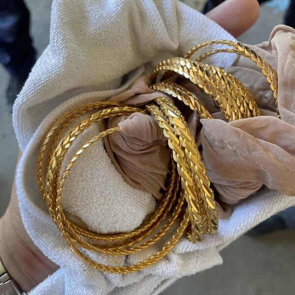 Detaljnom kontrolom je u prtljažniku automobila, ispod tapacirunga, u prostoru iza akumulatora, pronađeno 16 zlatnih narukvica, uvijenih u ženske čarape i aluminijumsku foliju. Reč je o 337 grama 14-karatnog zlata.